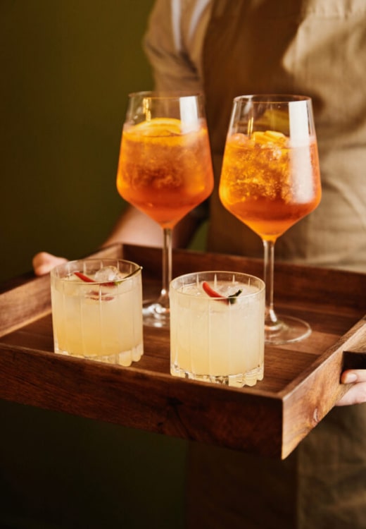 Liqueur de fleur de sureau, Prosecco, eau pétillante, menthe et citron vert